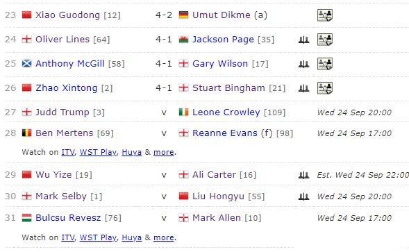 另一场中国德比战,由不久前打进沙特群众赛八强的常冰玉,对阵昨年武汉公开赛打进四强的龙泽煌。此役,常冰玉阐扬极度出色,总比分4-1任性驯服龙泽煌,晋级下一轮。