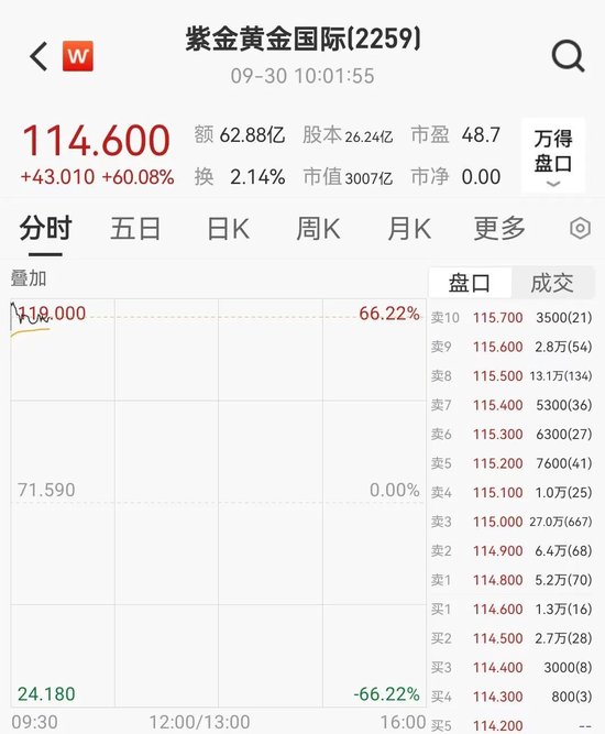 其中,紫金矿业子公司—紫金黄金海外本日在港交所主板挂牌上市,开盘直线拉升超60%。抑制发稿,紫金黄金海外股价仍然涨超60%。