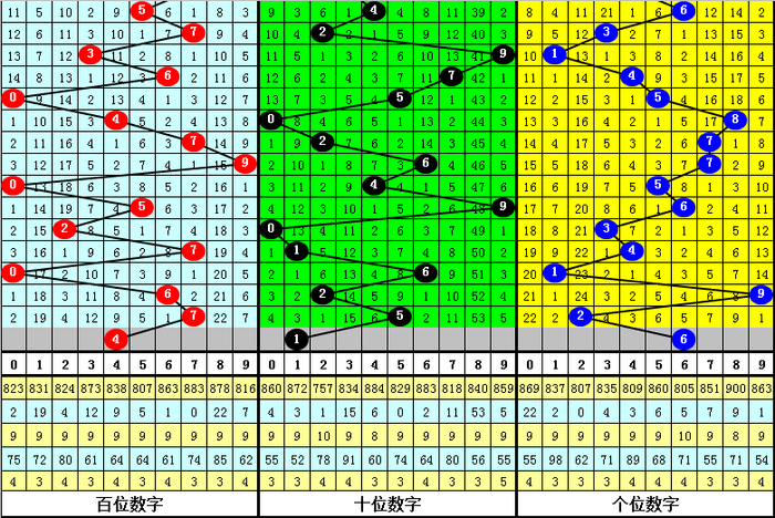 下期开出最热的四码分袂为:0169,本期凝视这四码包含百十位中的奖号。