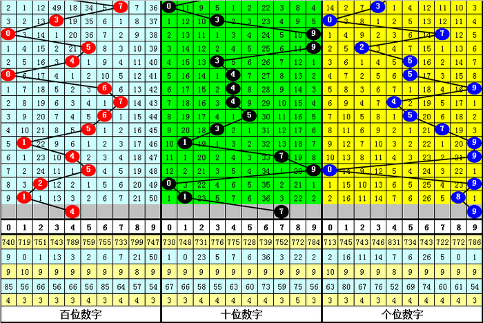 百十位差推选:前三期百十位差差别开出4-2-0,本期瞻望百十位差走大,提防3出现。